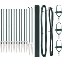 Zielony zestaw słupków ogrodzeniowych z PVC to świetny wybór do wyznaczania granic ogrodu. Dzięki dobrym materiałom, jest trwały i wytrzymały. Nowoczesny wygląd z gładkim wykończeniem świetnie pasuje do przestrzeni na zewnątrz. Warto go mieć, bo nie tylko dobrze wygląda, ale też zapewnia bezpieczeństwo.