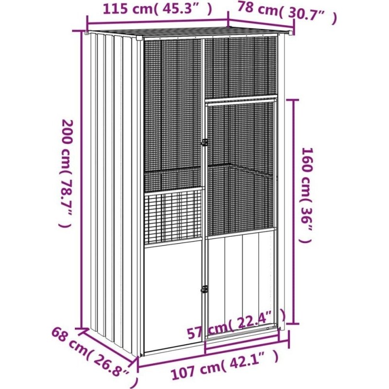 vidaXL Woliera, szara, 115x78x200 cm, galwanizowana stal