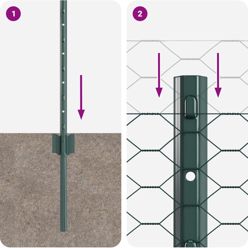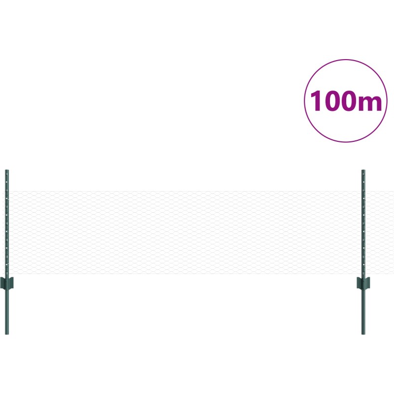 Słupki Płotu vidaXL 11 szt U-Channel Zielony 60 cm Stal, Zielony Płot Heksagonalny vidaXL 0.5x100 m Stal