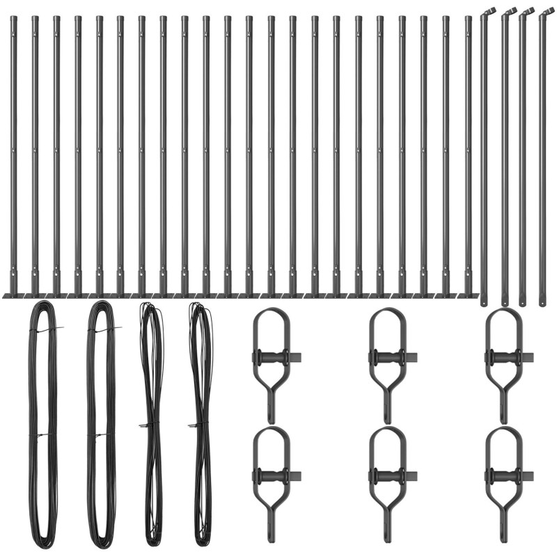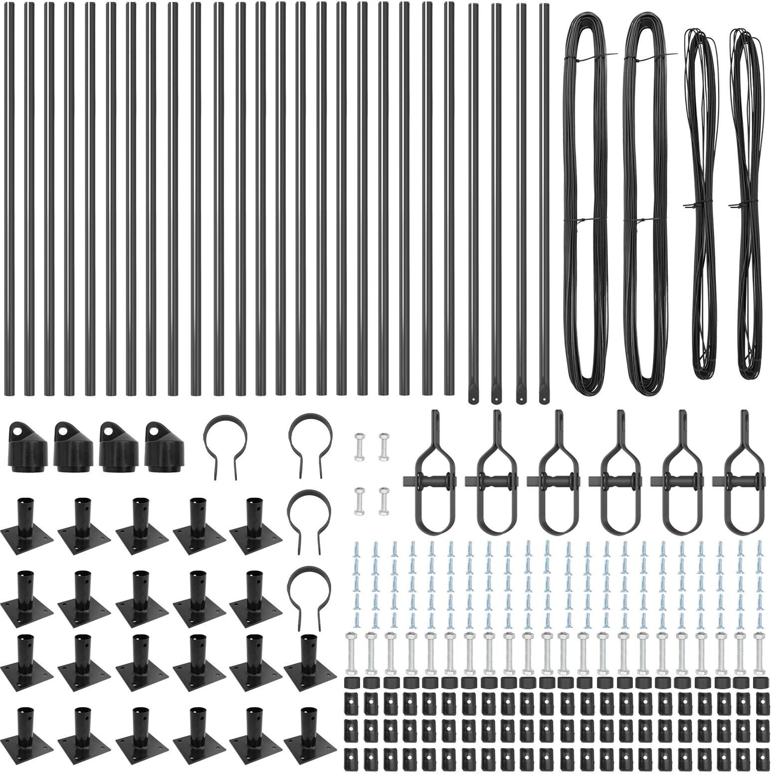 - Delivery Contains: 22 x Słup, 4 x Słup kątowy, 22 x Płyta podstawowa, 22 x Osłona plastikowa, 66 x Wsparcie tension wire z plastiku, 4 x Osłona słupa kątowego, 4 x Akcesoria do słupa kątowego, 6 x Napinacz, 2 x 25 m Drut wiążący, 2 x 80 m Drut tension
