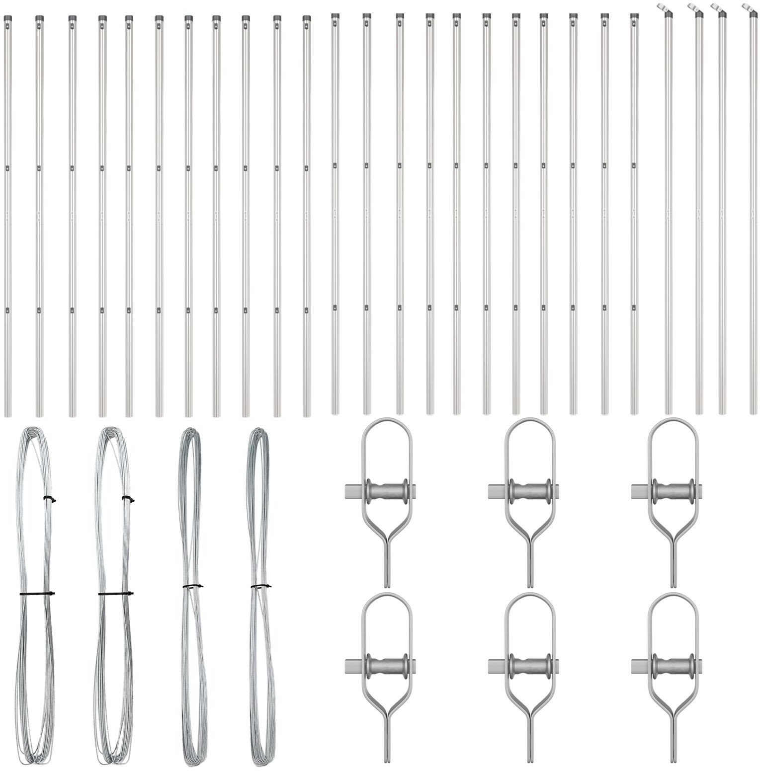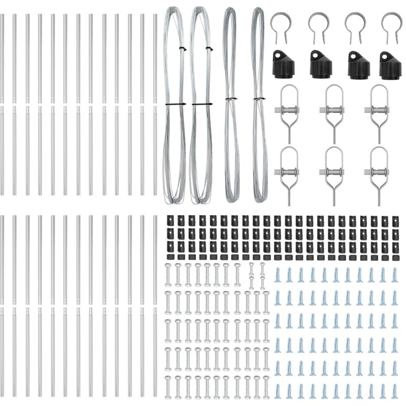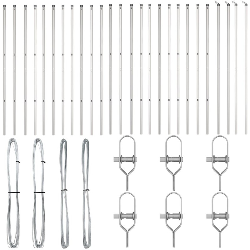 - Każdy zestaw zawiera dwa słupki ogrodzeniowe wykonane z mocnej stali ocynkowanej, zaprojektowane do znoszenia trudnych warunków atmosferycznych i pozostawania trwałe.
