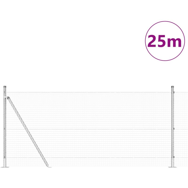 vidaXL Zestaw ogrodzeniowych słupków 25 m 2 słupki Srebrny ocynkowany