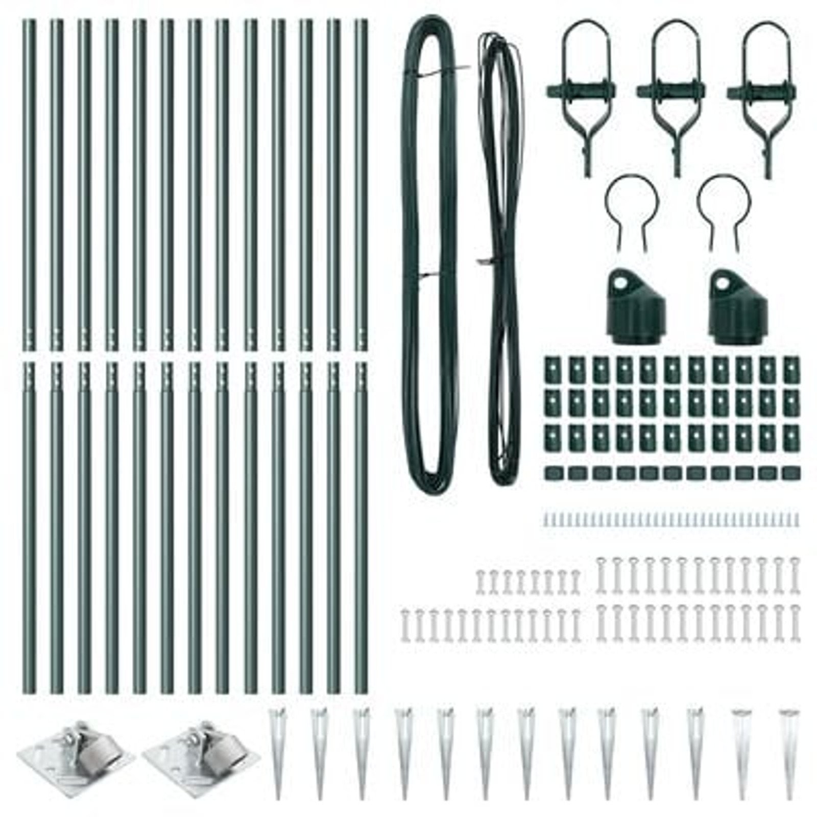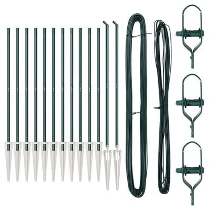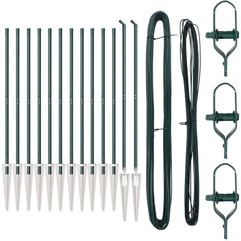 - Delivery Contains: 11 x Post, 2 x Angle Post, 11 x Spike, 2 x Angle Spike, 11 x Plastic Cap, 33 x Plastic Tension Wire Supporter, 33 x Crew on the Plastic Supporter, 2 x Angle Post Cap, 2 x Angle Post Hardware, 3 x Tensioner, 1 x 25m binding wire, 1 x 80m Tension Wire