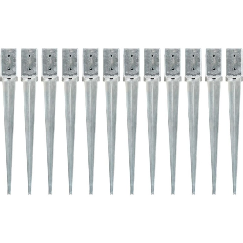 vidaXL Kołki gruntowe, 12 sztuk, srebrne, 8x8x76 cm, stal galwanizowana (145409)