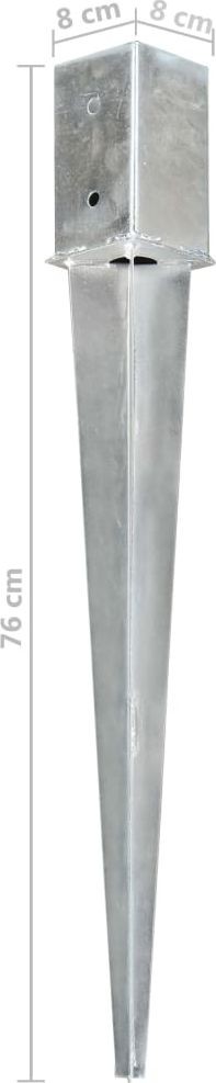 - Kołki gruntowe, 12 sztuk, srebrne, 8x8x76 cm, stal galwanizowana.