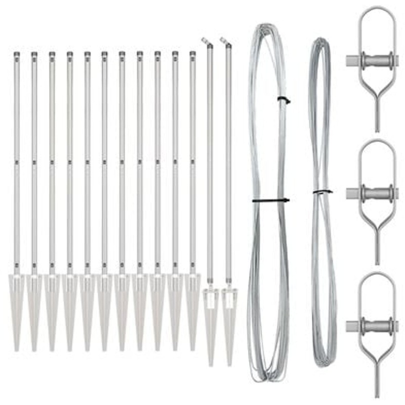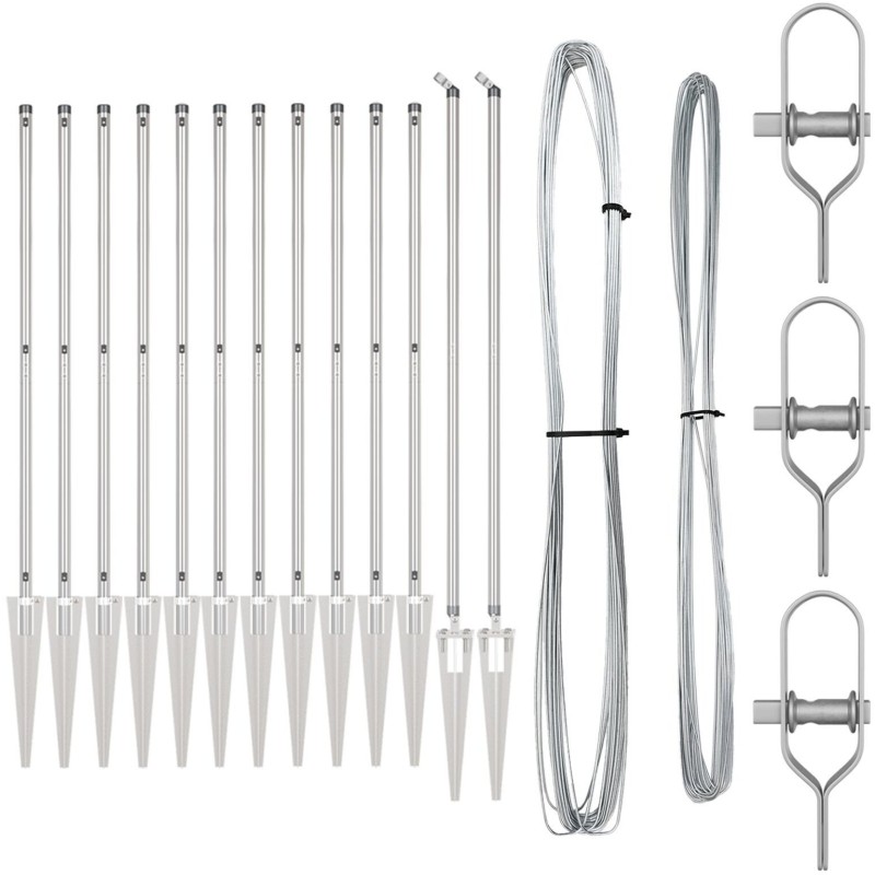 - Delivery Contains: 11 x Post, 2 x Angle Post, 11 x Spike, 2 x Angle Spike, 11 x Plastic Cap, 33 x Plastic Tension Wire Supporter, 33 x Crew on the Plastic Supporter, 2 x Angle Post Cap, 2 x Angle Post Hardware, 3 x Tensioner, 1 x 25m binding wire, 1 x 80m Tension Wire