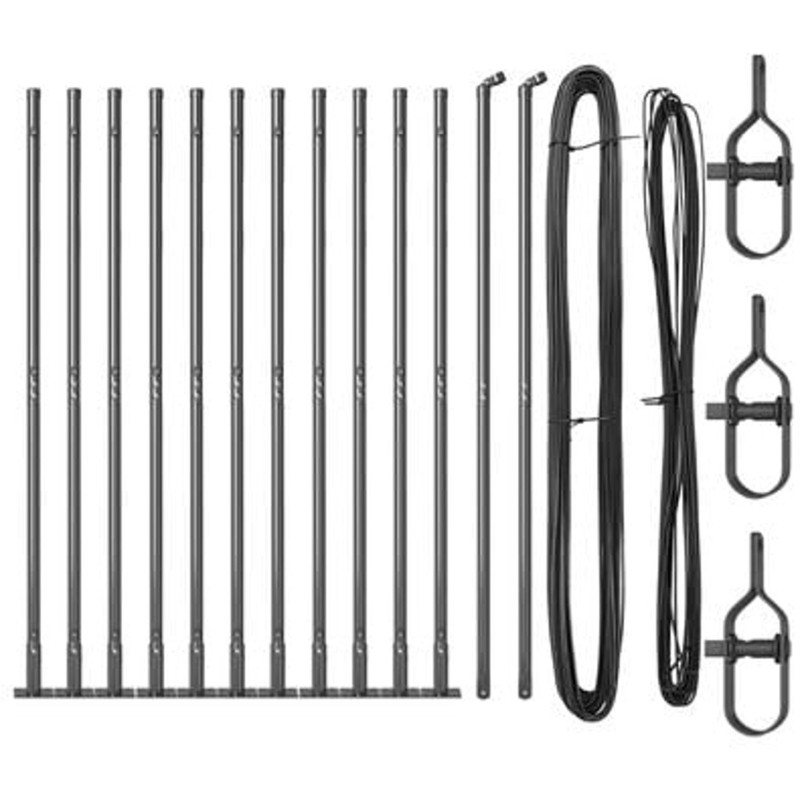 - Delivery Contains: 11 x Post, 2 x Angle post, 11 x Base plate, 11 x Plastic cap, 33 x Plastic tension wire supporter, 2 x Angle post cap, 2 x Angle post hardware, 3 x Tensioner, 1 x 25 m Binding wire, 1 x 80 m Tension wire