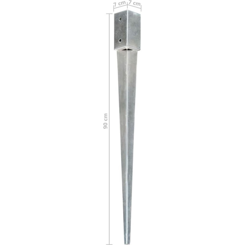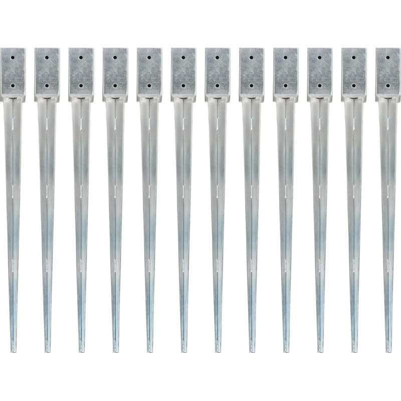 vidaXL Kołki gruntowe, 12 sztuk, srebrne, 7x7x90 cm, stal galwanizowana (145406)