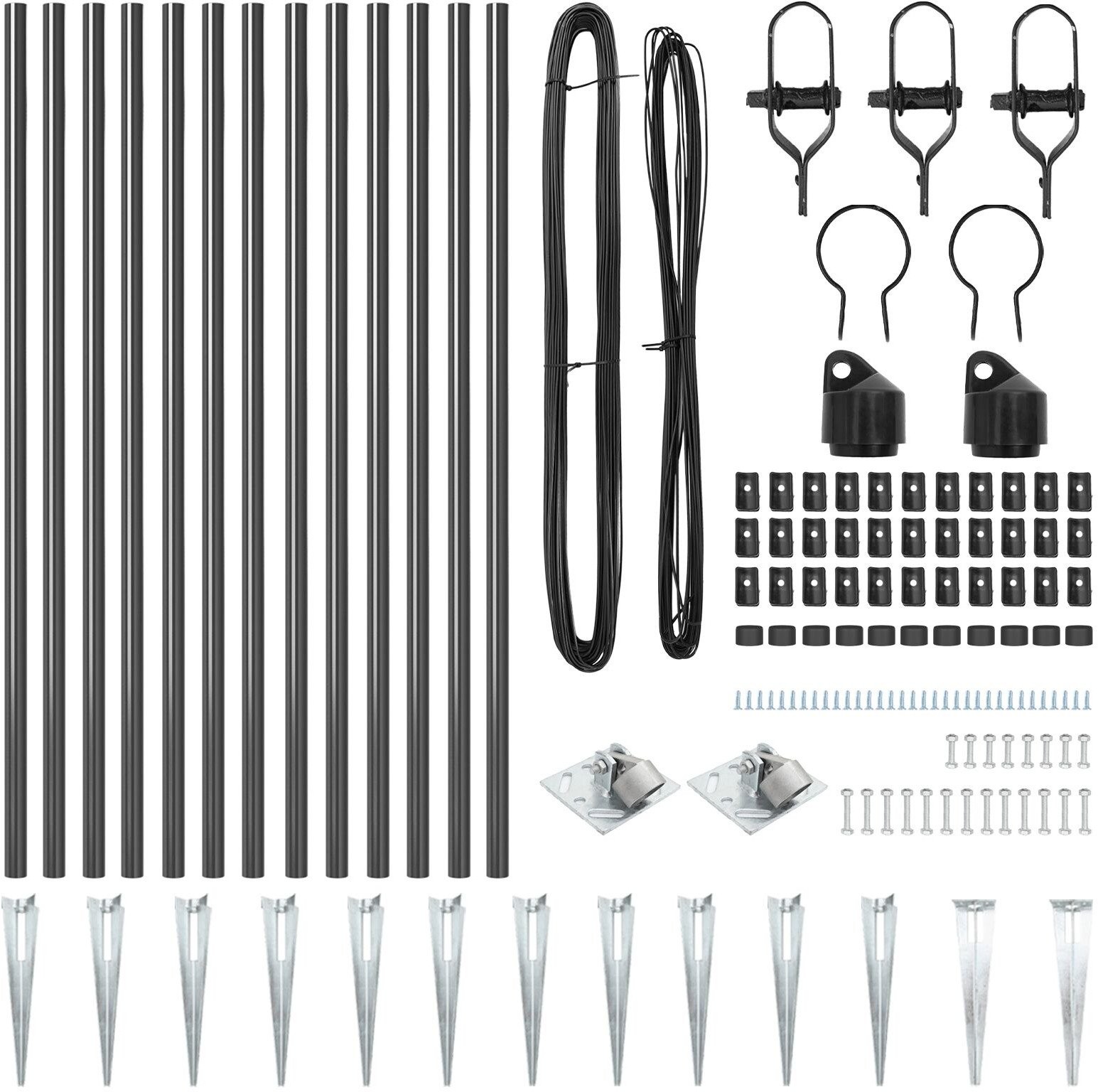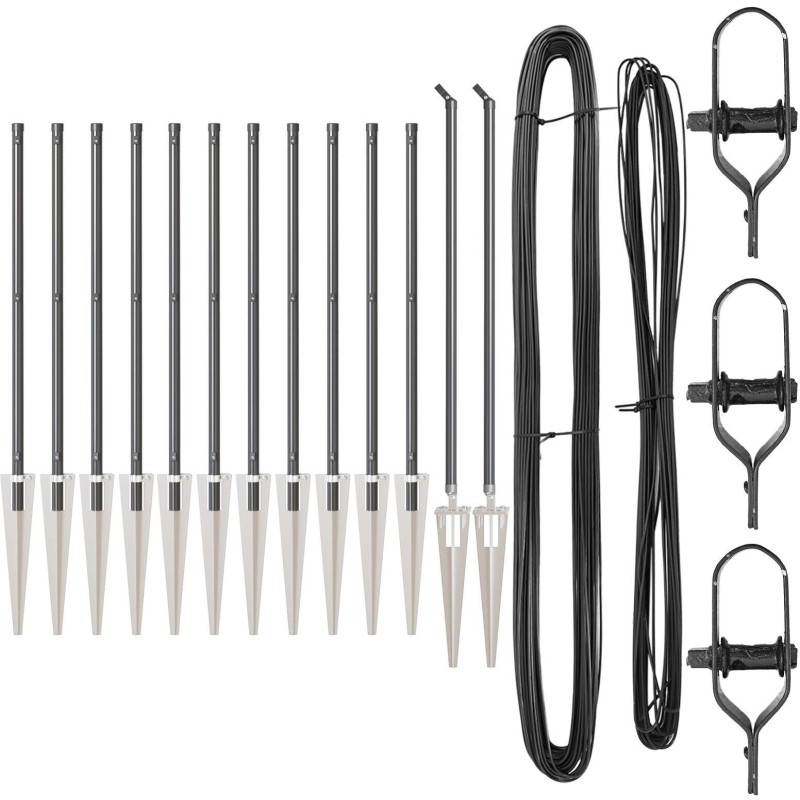 - Kompletny zestaw komponentów: Paczka zawiera wiele elementów, jak końcówki i uchwyty, co ułatwia montaż słupków i szybkie postawienie ogrodzenia.