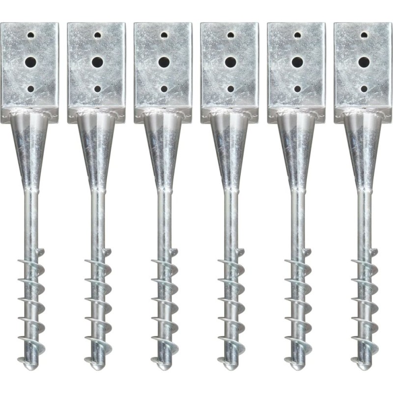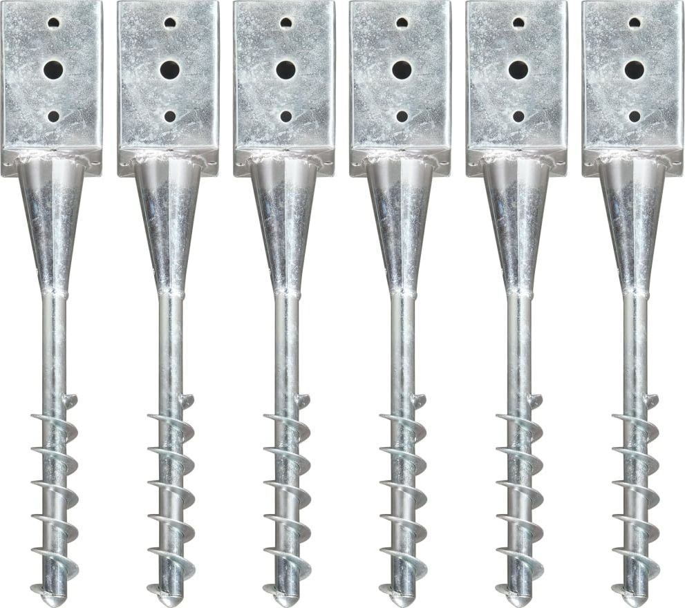 vidaXL Kołki gruntowe, 6 sztuk, srebrne, 9x9x56 cm, stal galwanizowana (145440)