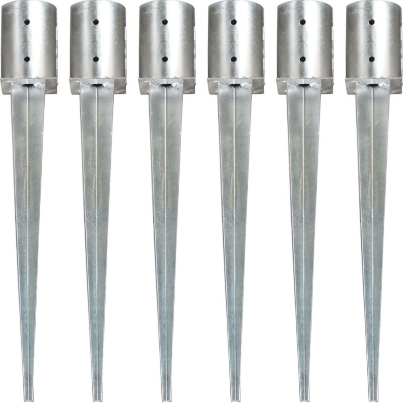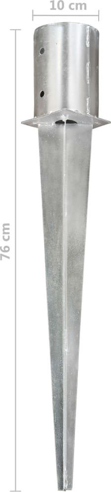 vidaXL Kołki gruntowe, 6 sztuk, srebrne, 10x76 cm, stal galwanizowana (145432)