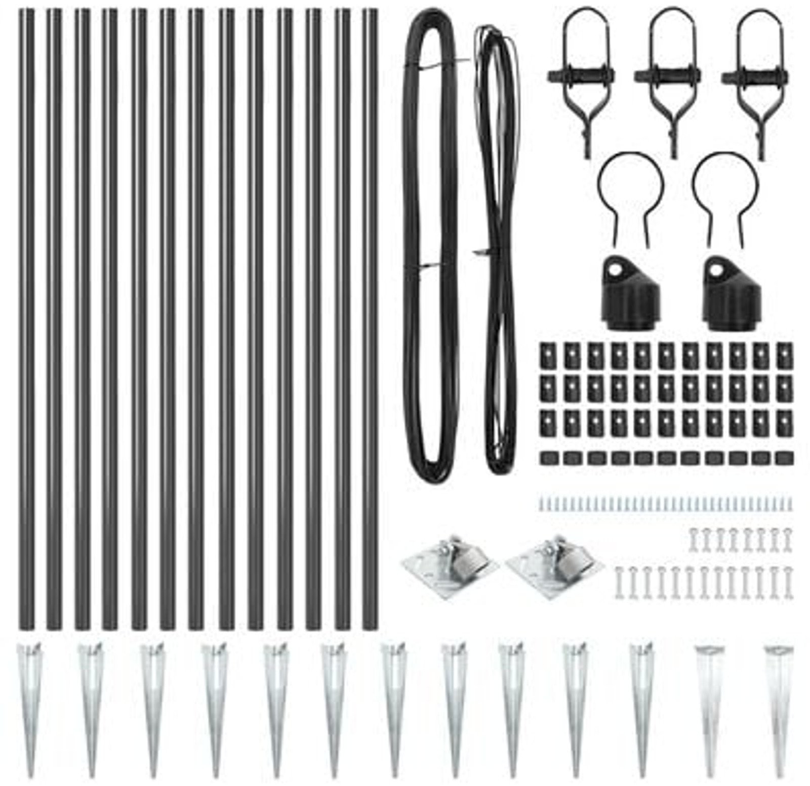 - Delivery Contains: 11 x Post, 2 x Angle Post, 11 x Spike, 2 x Angle Spike, 11 x Plastic Cap, 33 x Plastic Tension Wire Supporter, 33 x Crew on the Plastic Supporter, 2 x Angle Post Cap, 2 x Angle Post Hardware, 3 x Tensioner, 1 x 25m Binding Wire, 1 x 80m Tension Wire