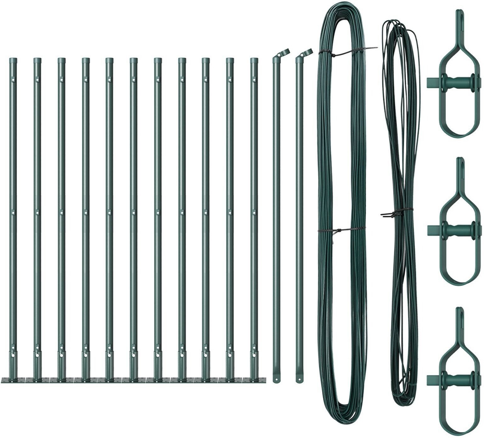 - Delivery Contains: 11 x Post, 2 x Angle post, 11 x Base plate, 11 x Plastic cap, 33 x Plastic tension wire supporter, 2 x Angle post cap, 2 x Angle post hardware, 3 x Tensioner, 1 x 25 m Binding wire, 1 x 80 m Tension wire