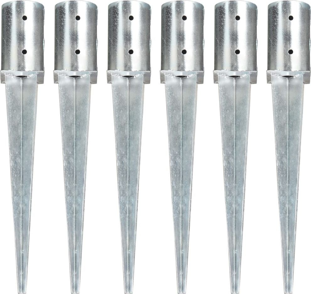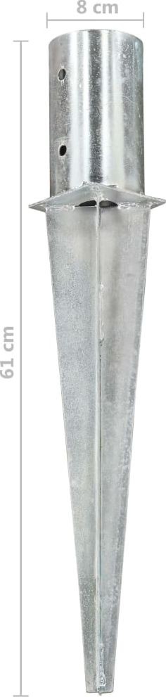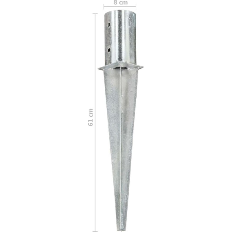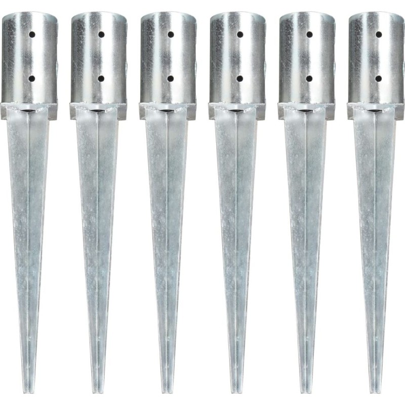 vidaXL Kołki gruntowe, 6 sztuk, srebrne, 8x61 cm, stal galwanizowana (145430)