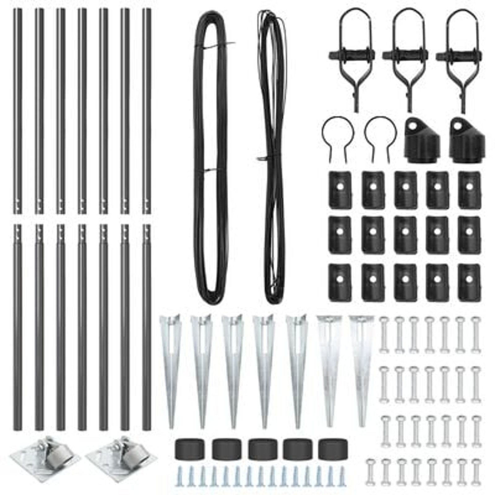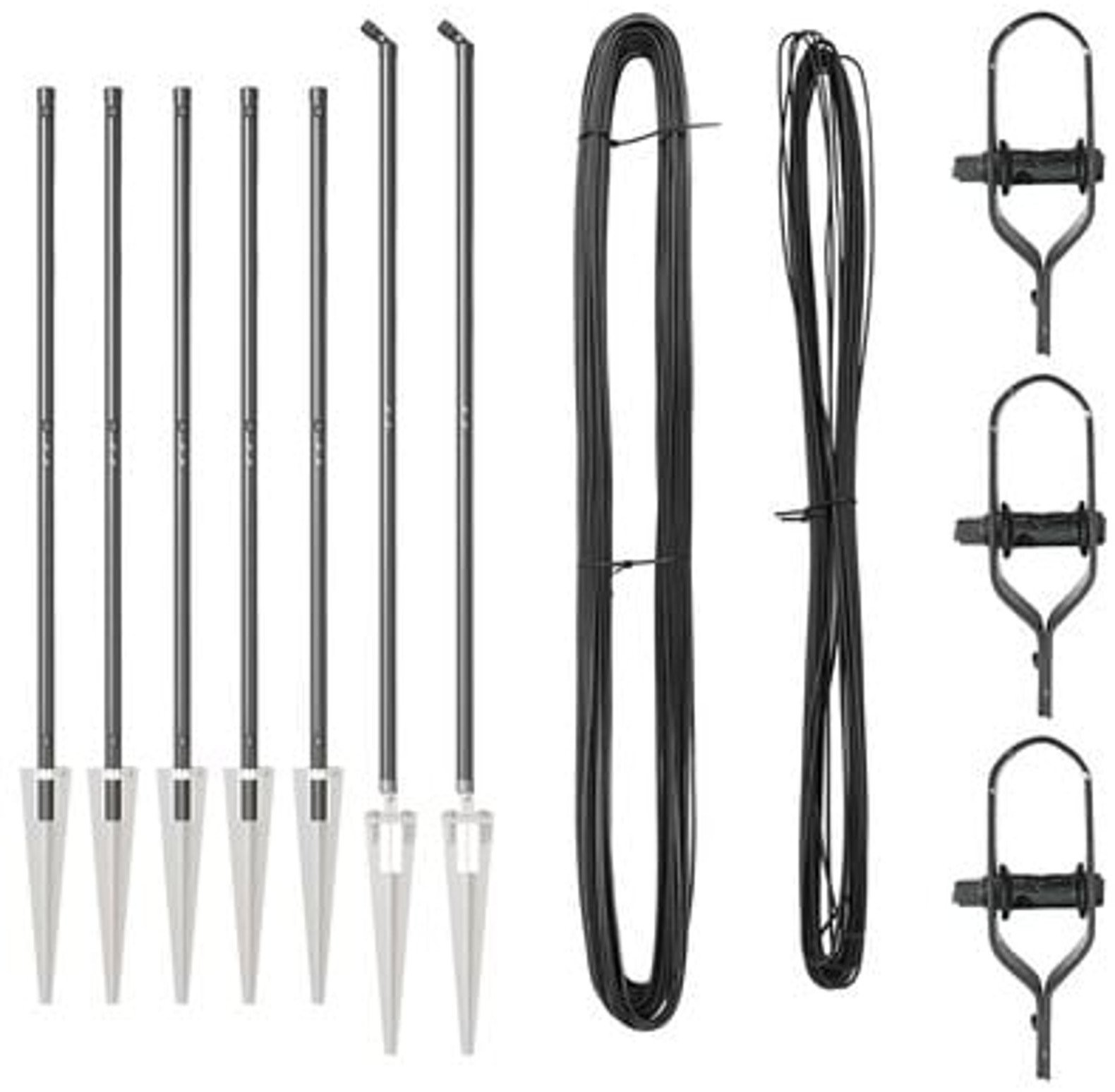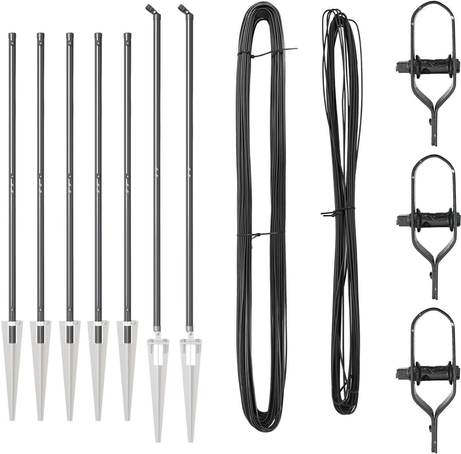 - Delivery Contains: 5 x Post, 2 x Angle Post, 5 x Spike, 2 x Angle Spike, 5 x Plastic Cap, 15 x Plastic Tension Wire Supporter, 15 x Crew on the Plastic Supporter, 2 x Angle Post Cap, 2 x Angle Post Hardware, 3 x Tensioner, 1 x 25m binding wire, 1 x 33m tension wire