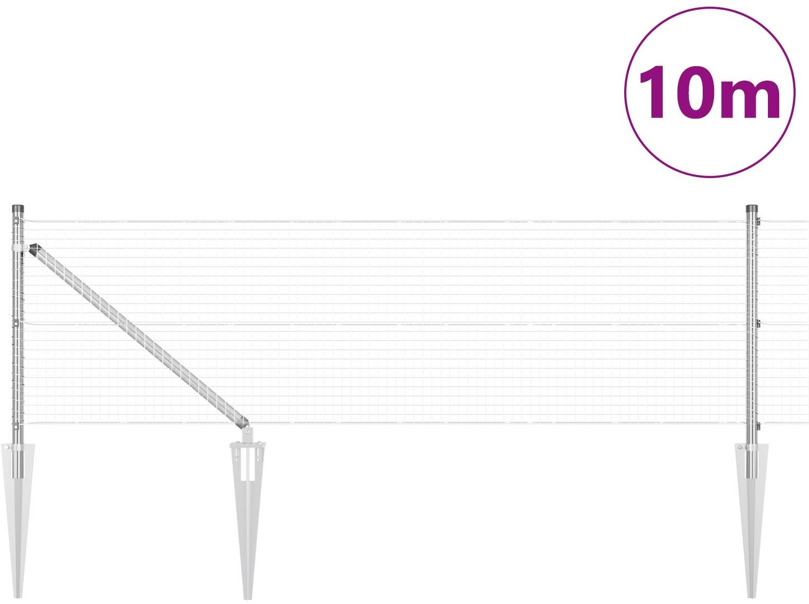 vidaXL Zestaw słupków ogrodzeniowych Zestaw 2 Stal ocynkowana 10 x 0.5 m