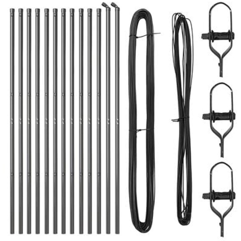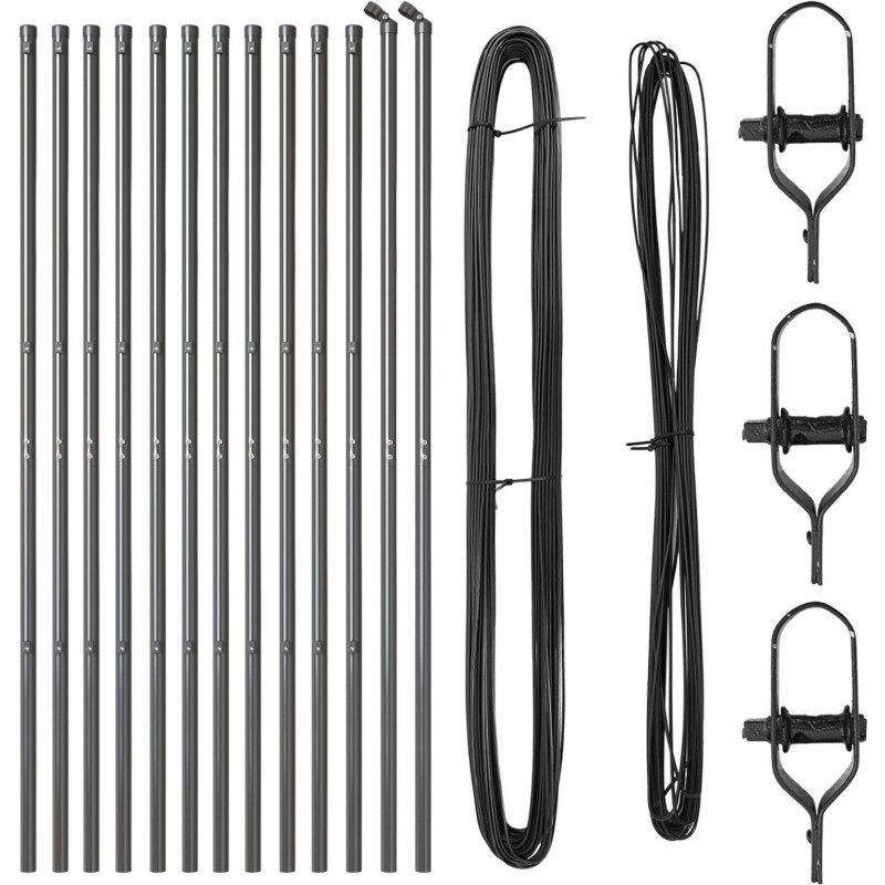 - Delivery Contains: 11 x Post, 2 x Angle post, 11 x Plastic cap, 33 x Plastic tension wire supporter, 2 x Angle post cap, 2 x Angle post hardware, 3 x Tensioner, 1 x 25 m Binding wire, 1x 80 m Tension wire