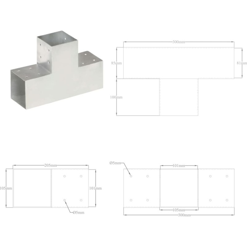 vidaXL Łączniki w kształcie T, 4 szt., galwanizowany metal, 101x101 mm