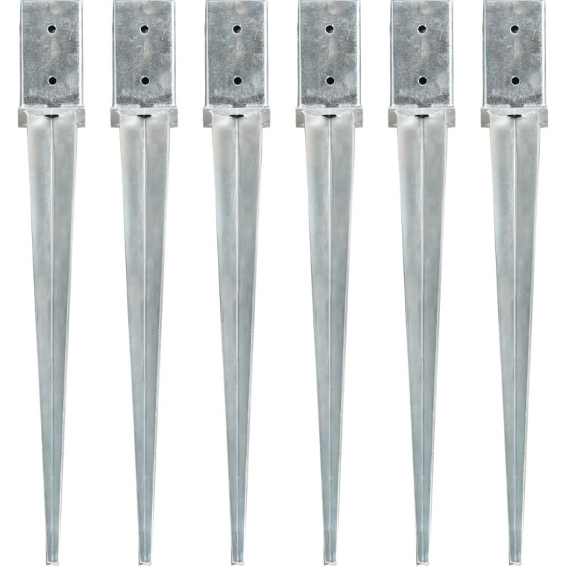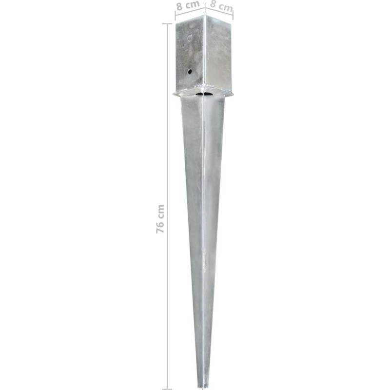 vidaXL Kołki gruntowe, 6 sztuk, srebrne, 8x8x76 cm, stal galwanizowana (145408)