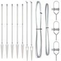 - Delivery Contains: 5 x Post, 2 x Angle Post, 5 x Spike, 2 x Angle Spike, 5 x Plastic Cap, 15 x Plastic Tension Wire Supporter, 15 x Crew on the Plastic Supporter, 2 x Angle Post Cap, 2 x Angle Post Hardware, 3 x Tensioner, 1 x 25m binding wire, 1 x 33m tension wire