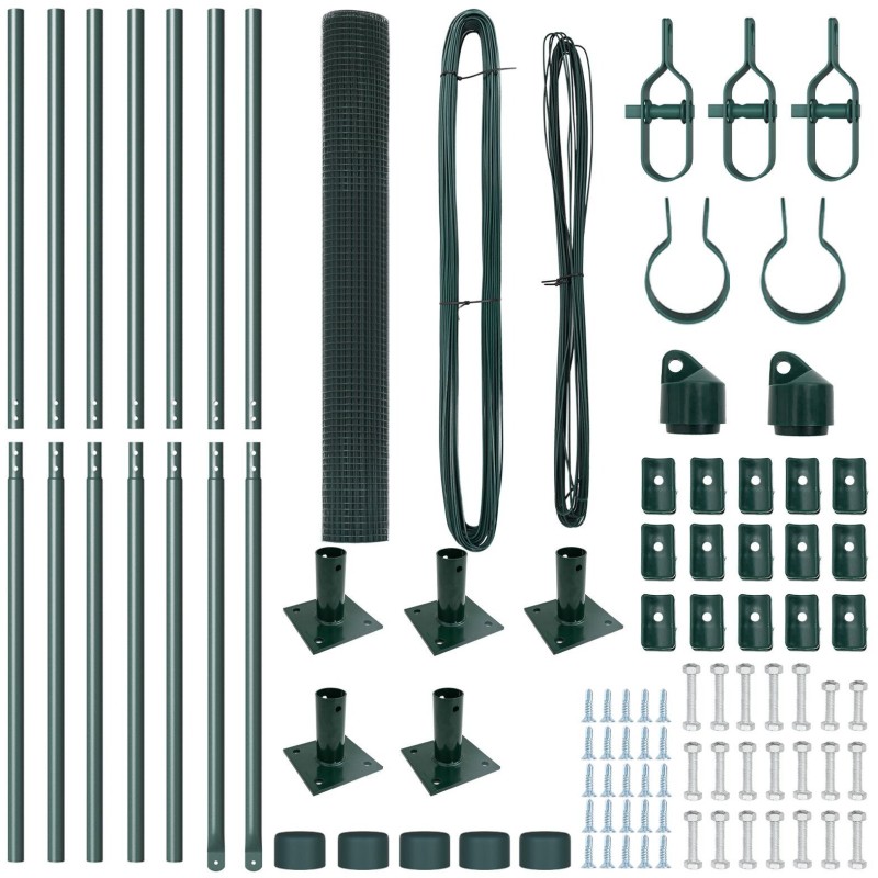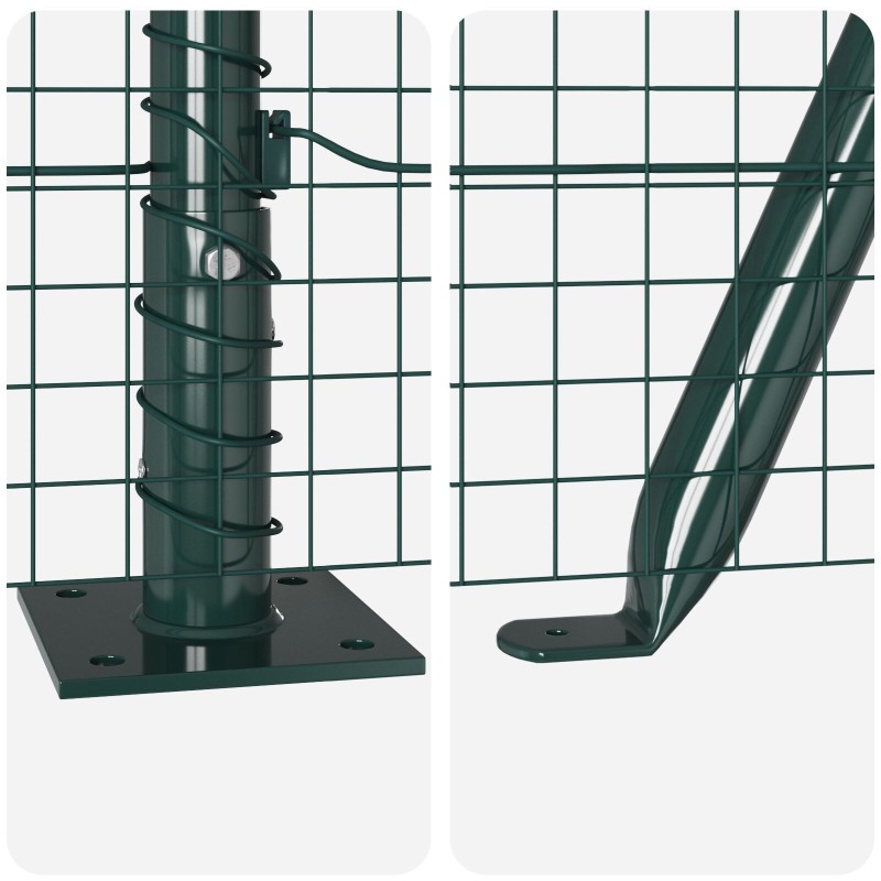 Ten zielony zestaw metalowych słupków ogrodzeniowych to świetny wybór do zabezpieczenia twojego ogrodu lub posesji dzięki solidnym materiałom. Jego zielone wykończenie dobrze pasuje do różnych stylów, a jednocześnie jest wystarczająco mocne do użytku na zewnątrz. Dodaje uroku i zapewnia bezpieczeństwo.