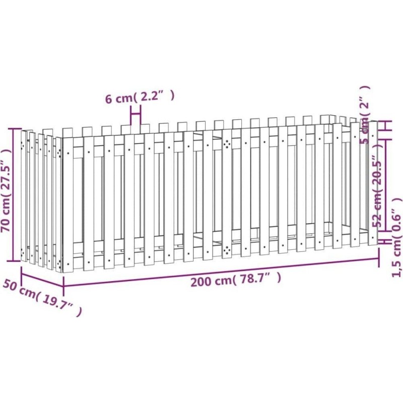 vidaXL Rabata ogrodowa z płotkiem, 200x50x70 cm, drewno daglezjowe