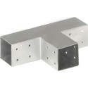 Elektrogalwanizowany łącznik umożliwia łatwe łączenie i stabilizację belek. Wszystkie łączniki mają fabrycznie nawiercone otwory. Ten łącznik jest przeznaczony do 3 kwadratowych belek drewnianych o grubości 71 mm.