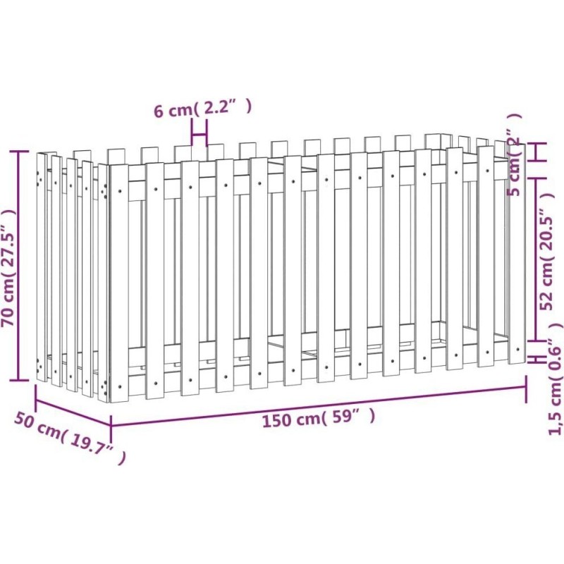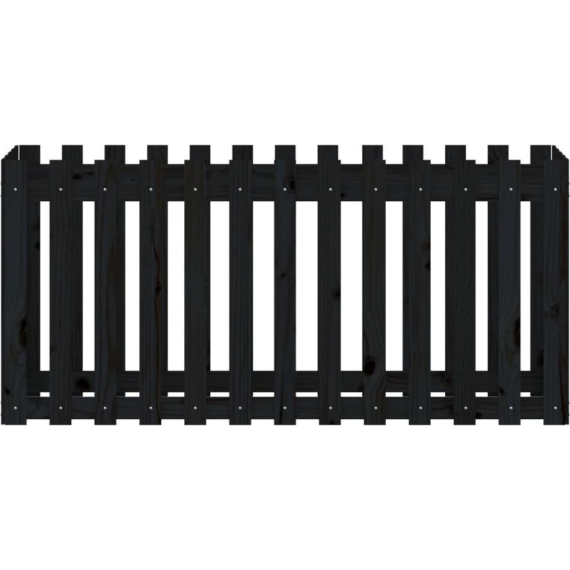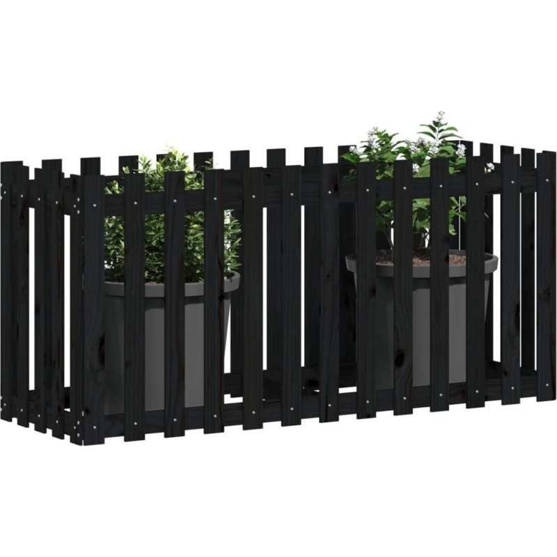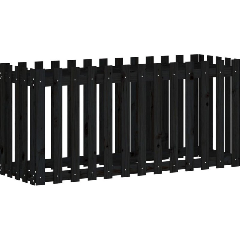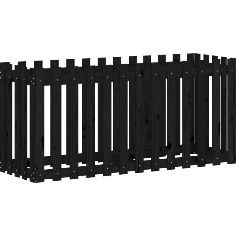 vidaXL Rabata ogrodowa z płotkiem, czarna, 150x50x70cm, drewno sosnoweDrewniana rabata będzie idealnym wyborem do uprawy wielu różnych roślin i kwiatów. Świeże drewno sosnowe: drewno to piękny, naturalny materiał. Drewno sosnowe ma prostą strukturę słojów, a sęki nadają mu wyjątkowy, rustykalny wygląd.Przestronna przestrzeń: donica ogrodowa jest wystarczająco głęboka i szeroka, aby pomieścić dużą ilość ziemi i zapewnić wiele miejsca na Twoje rośliny i kwiaty.Wszechstronne zastosowanie: możesz zasadzić rośliny bezpośrednio w tej rabacie ogrodowej lub umieścić w niej plastikową doniczkę.