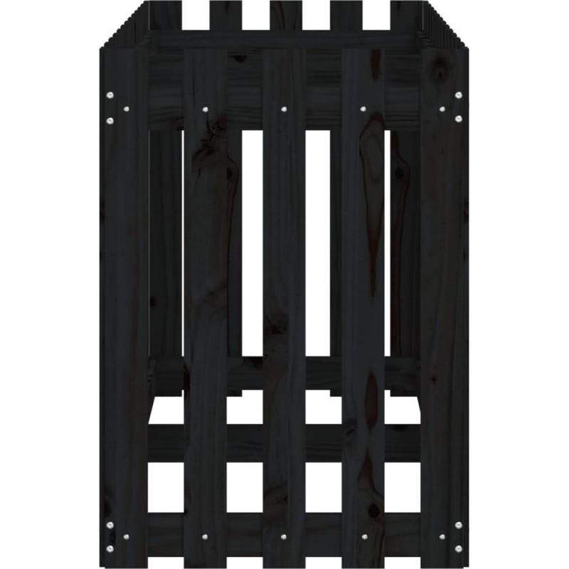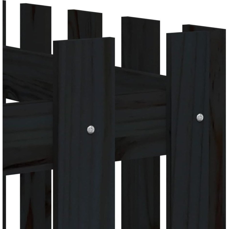 vidaXL Rabata ogrodowa z płotkiem, czarna, 150x50x70cm, drewno sosnowe