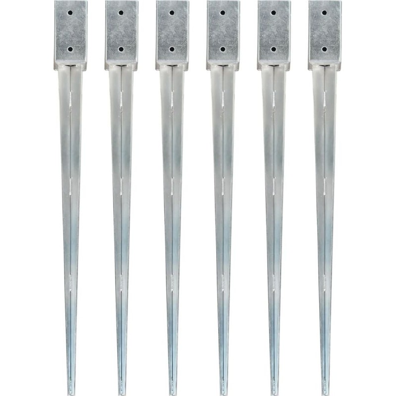 vidaXL Kołki gruntowe, 6 szt., srebrne, 7x7x90 cm, stal galwanizowana