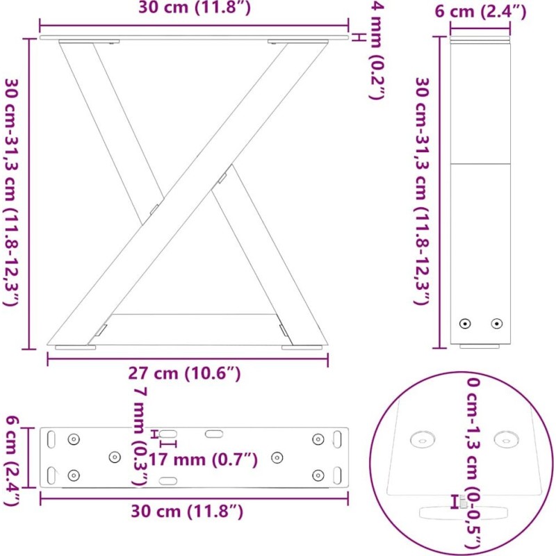 vidaXL Nogi do stolika kawowego 2 szt. Antracyt 30x(30-31,3) cm Stal