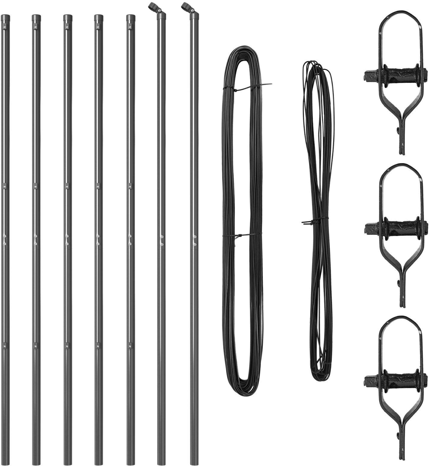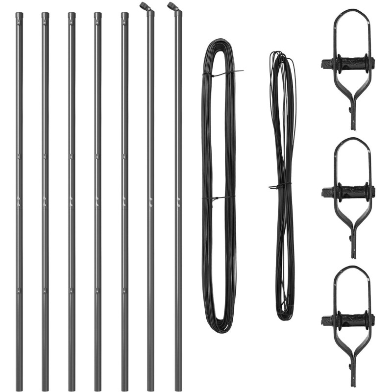 - Delivery Contains: 5 x słup, 2 x słup kątowy, 5 x plastikowa nakrywka, 15 x plastikowy wspornik napięcia, 2 x nakrywka słupa kątowego, 2 x akcesoria słupa kątowego, 3 x elementy napięcia, 1 x 25 m drutu wiążącego, 1 x 33 m drutu napięcia.