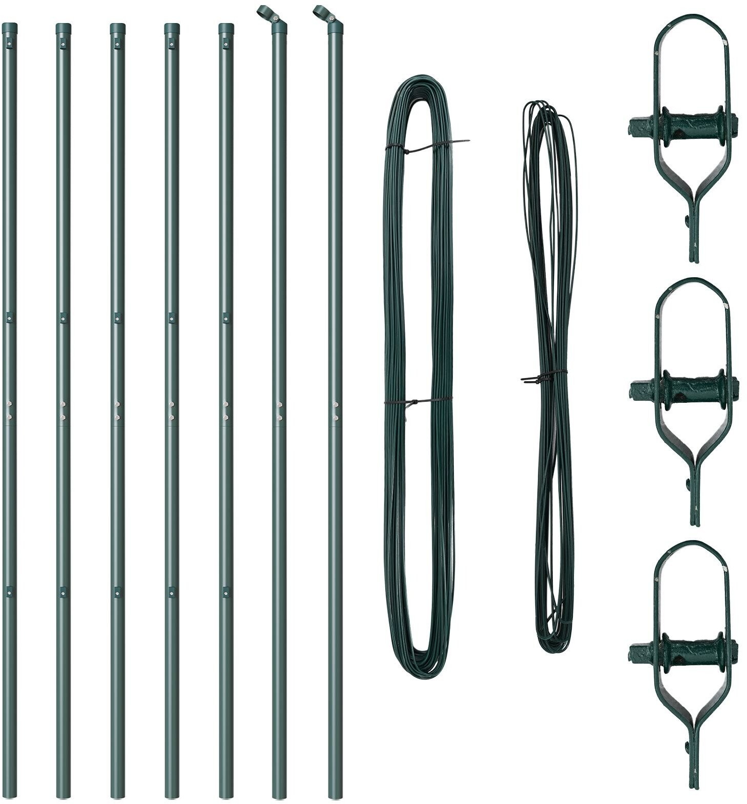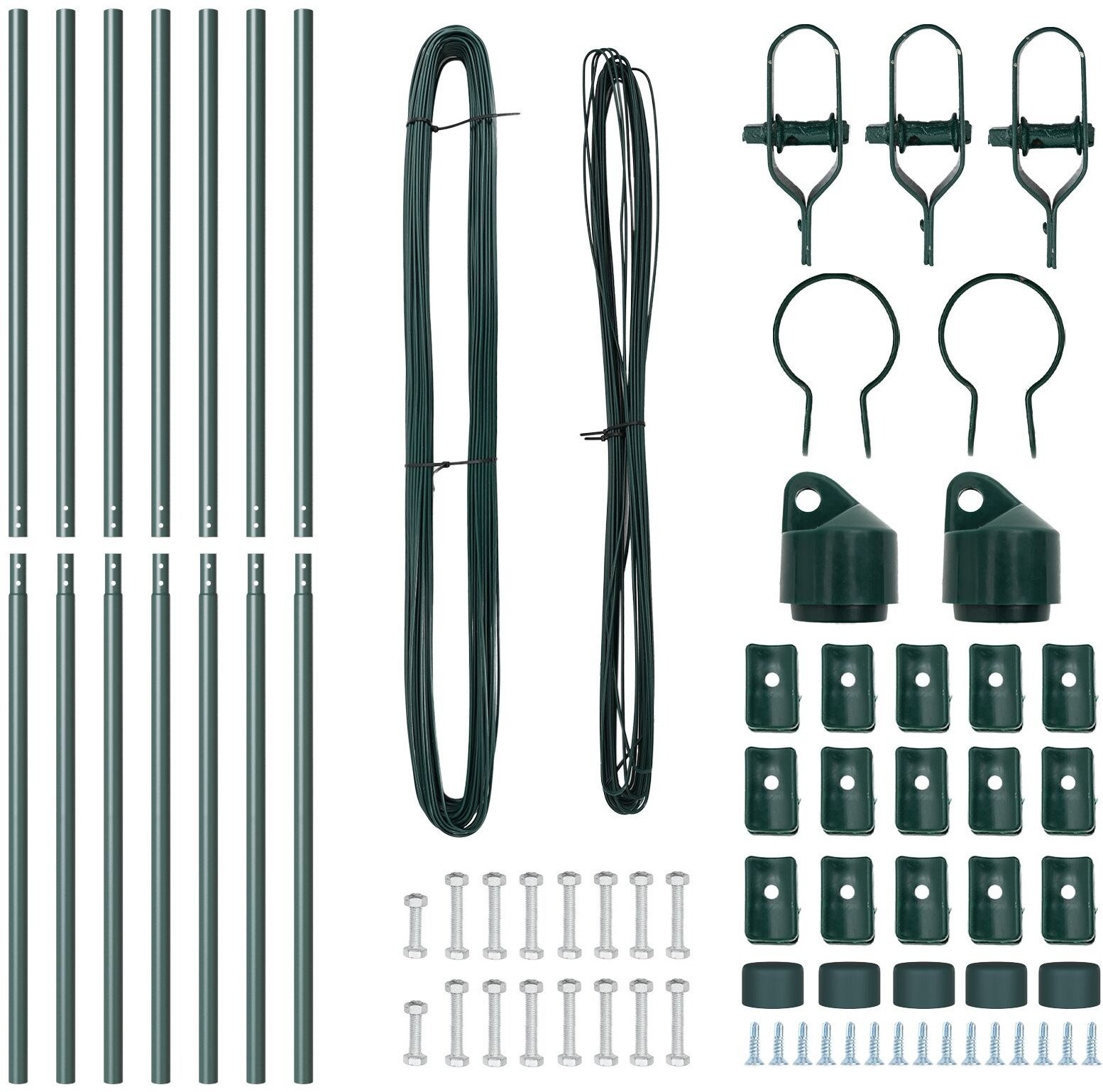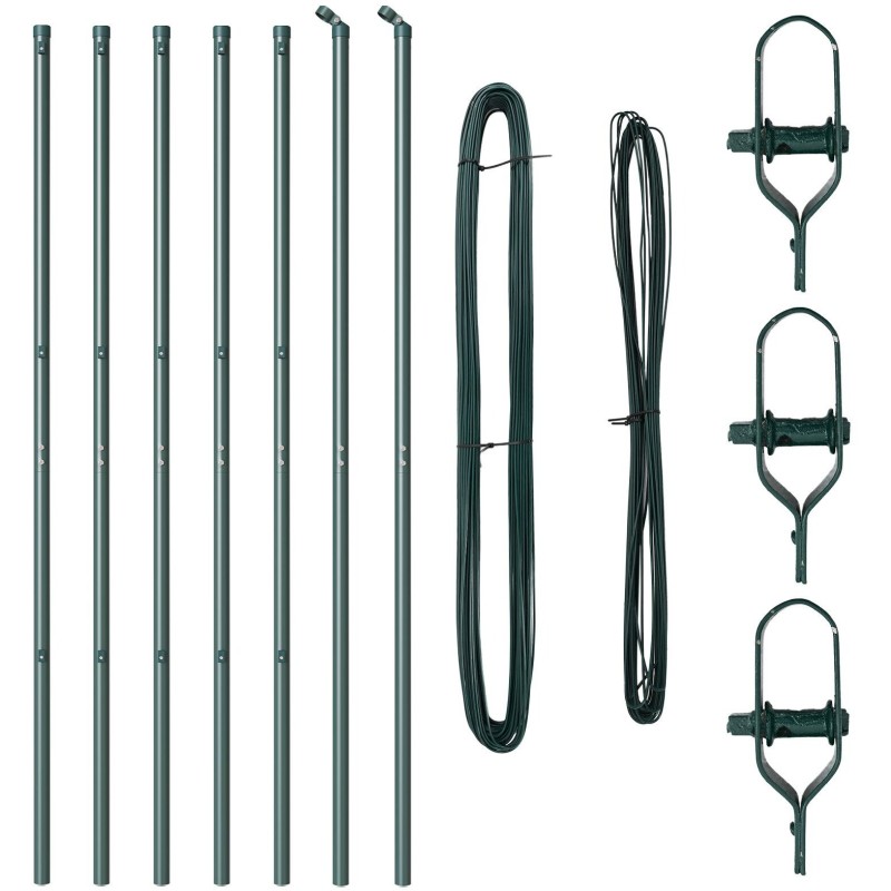- Delivery Contains: 5 x Słup, 2 x Słup kątowy, 5 x Zatyczka plastikowa, 15 x Wspornik napięcia plastikowego, 2 x Zatyczka słupa kątowego, 2 x Elementy mocujące słupa kątowego, 3 x Napięcie, 1 x 25 m Drut wiążący, 1 x 33 m Drut napięcia