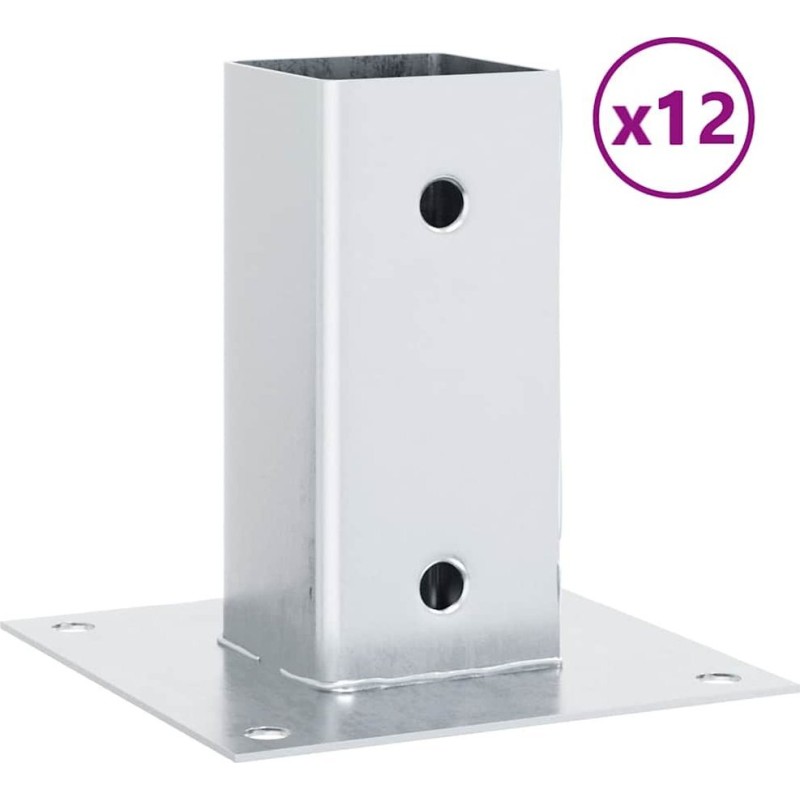 vidaXL Podstawy słupków kwadratowe 12 szt. Srebrne Stal ocynkowana