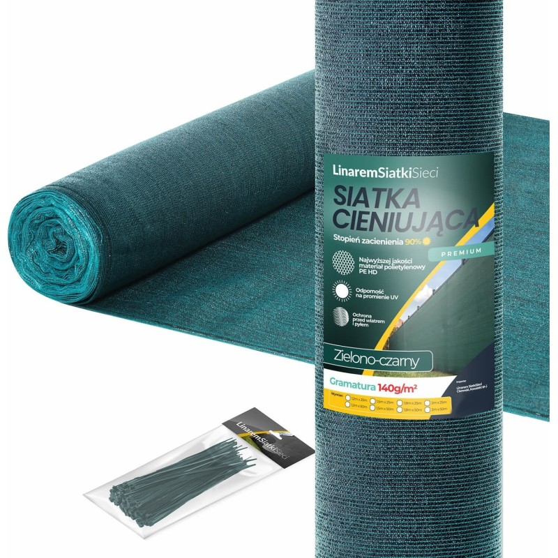 Linarem SiatkiSieci SIATKA CIENIUJĄCA 1,5x25 MASKUJĄCA 90% OSŁONA NA OGRODZENIE ZIELONO-CZARNA