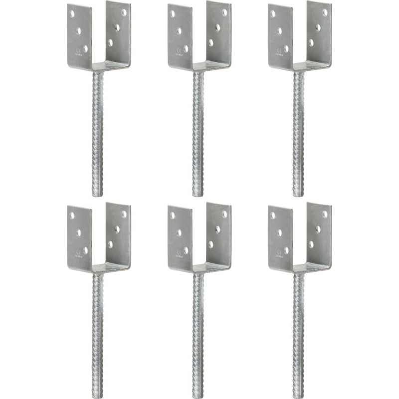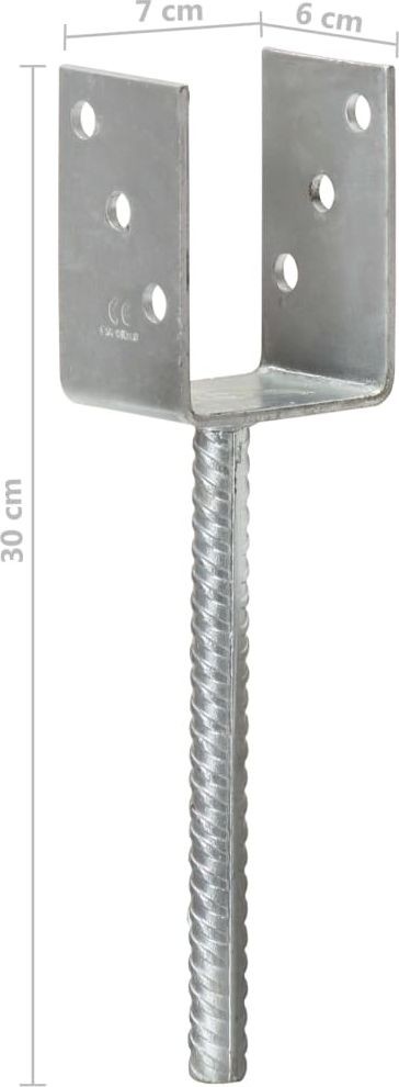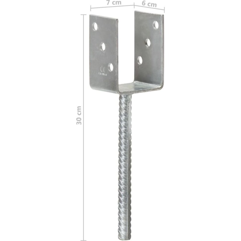 - Kotwy do słupków, 6 sztuk, srebrne, 7 x 6 x 30 cm, stal.