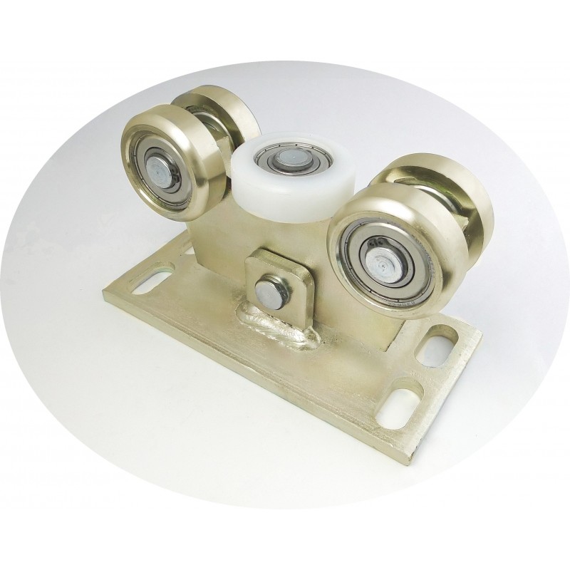 - Wózki do bram występują w wersjach 2, 3, 5, 8 lub 10 rolkowych z osadzonymi łożyskami.