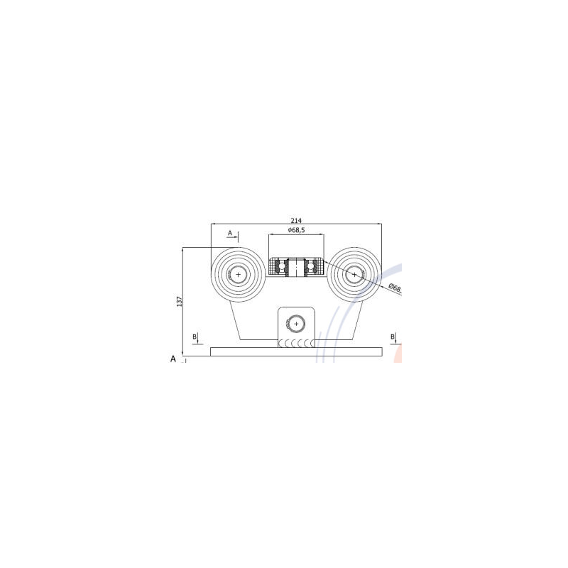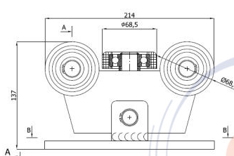 - Podstawa wózka bramowego posiada 4 otwory podłużne które umożliwiają regulacje położenia.