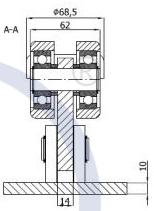 - Rolka idealnie nadaje się do wykorzystania w budowie elementów podwieszanych, bram oraz drzwi podwieszanych z wykorzystaniem szyny.