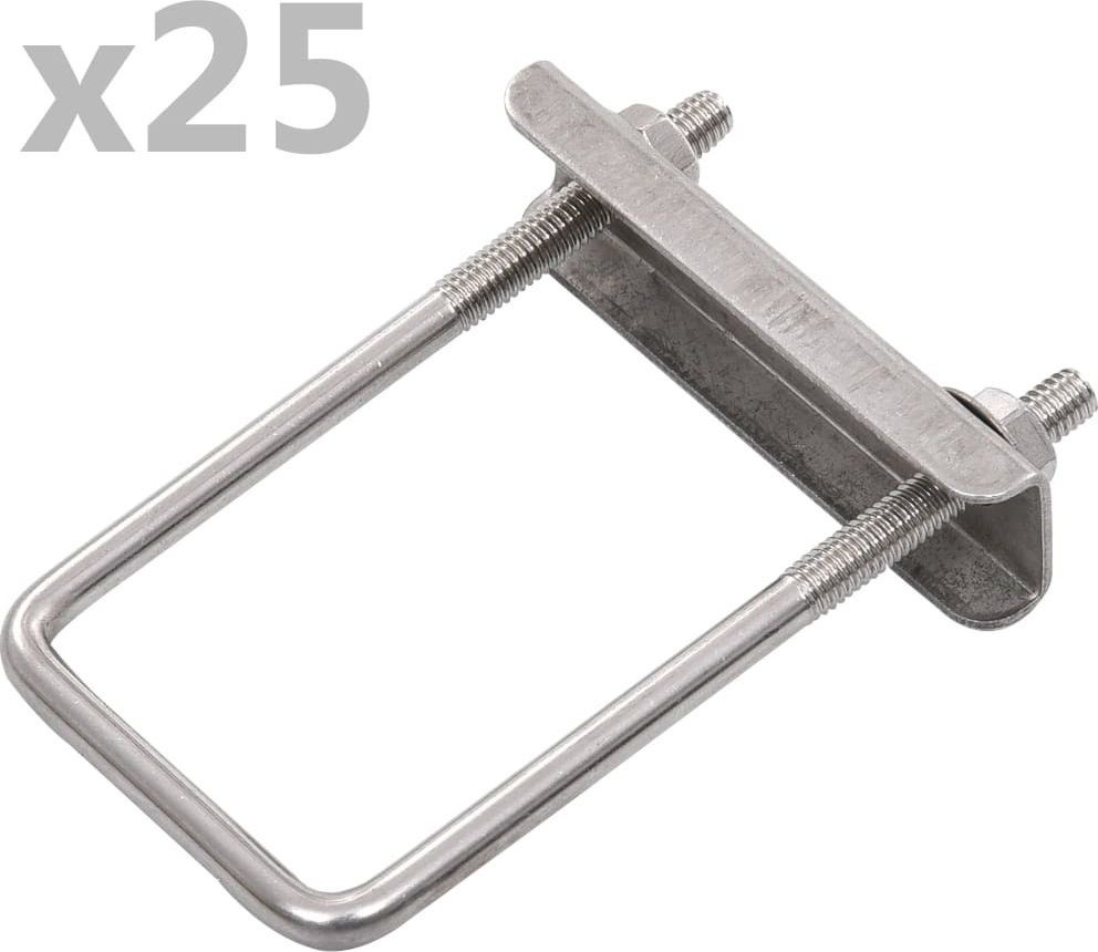 Łącznik w kształcie litery U wykonano z wysokiej jakości stali nierdzewnej, która jest odporna na korozję i zapewnia lata niezawodnego użytkowania. Przesyłka obejmuje 25 zestawów w jednym pudełku, a każdy zestaw zawiera: 1 uchwyt U-kształtny, 1 płytkę montażowa, 2 nakrętki i 2 podkładki.