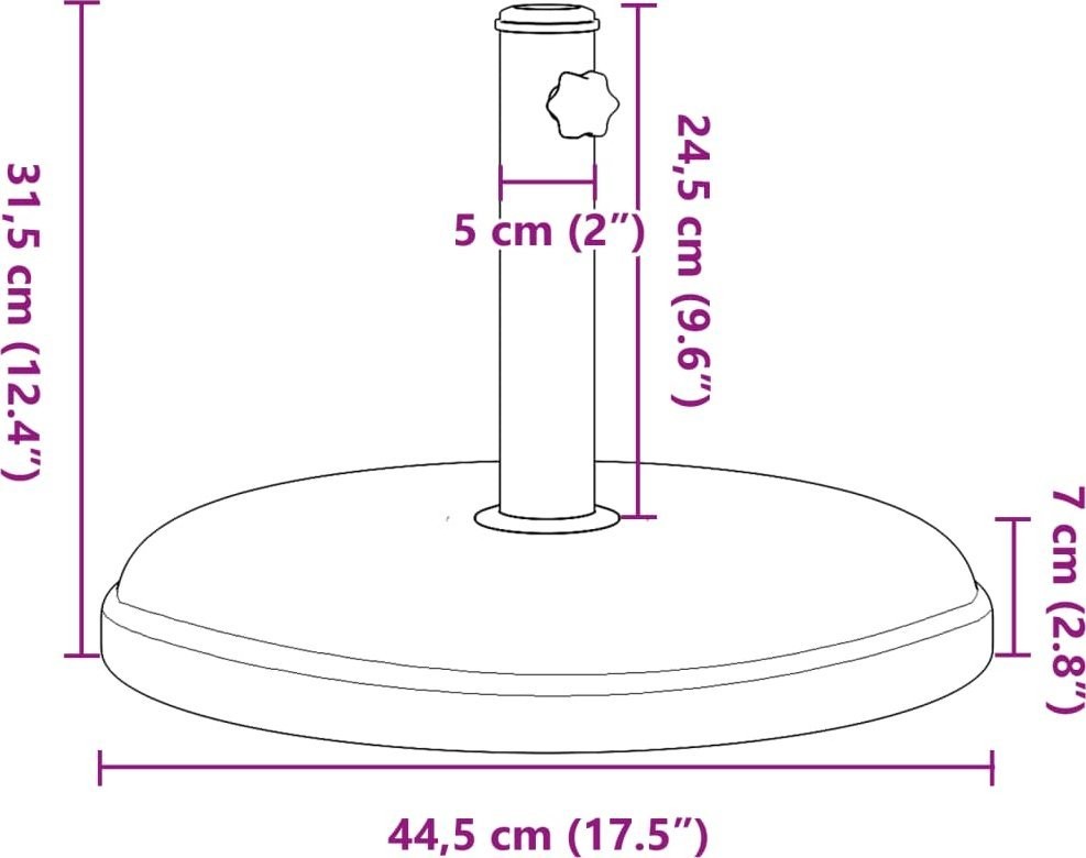 - Mocna i stabilna podstawa: ta podstawa do parasola ma trwałą pokrywę z tworzywa sztucznego wypełnioną betonem, co zapewnia wyjątkową stabilność. Dzięki temu parasol będzie solidnie zamocowany i nie przewróci się nawet przy wietrze.