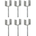 vidaXL Kotwy do słupków, 6 sztuk, srebrne, 10 x 6 x 30 cm, stal (145318)