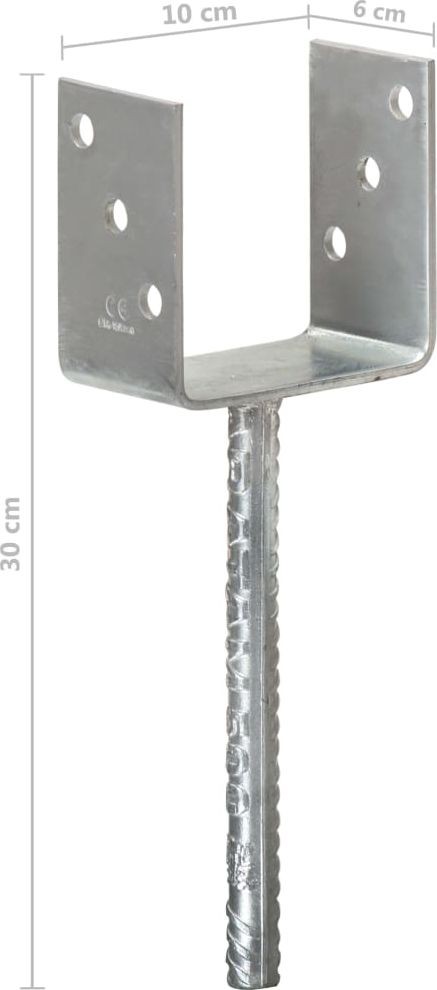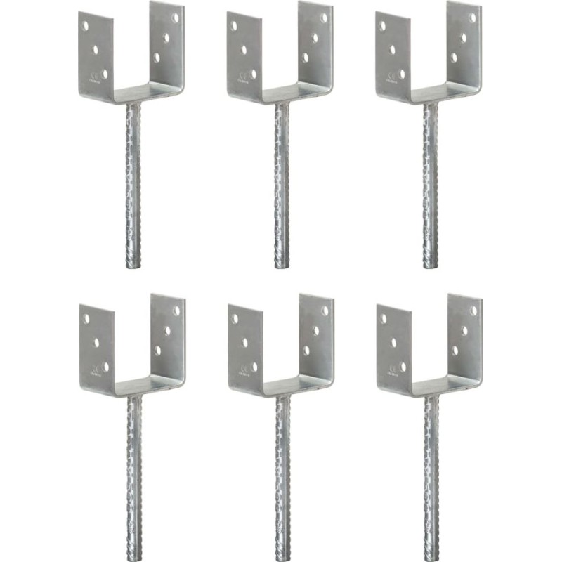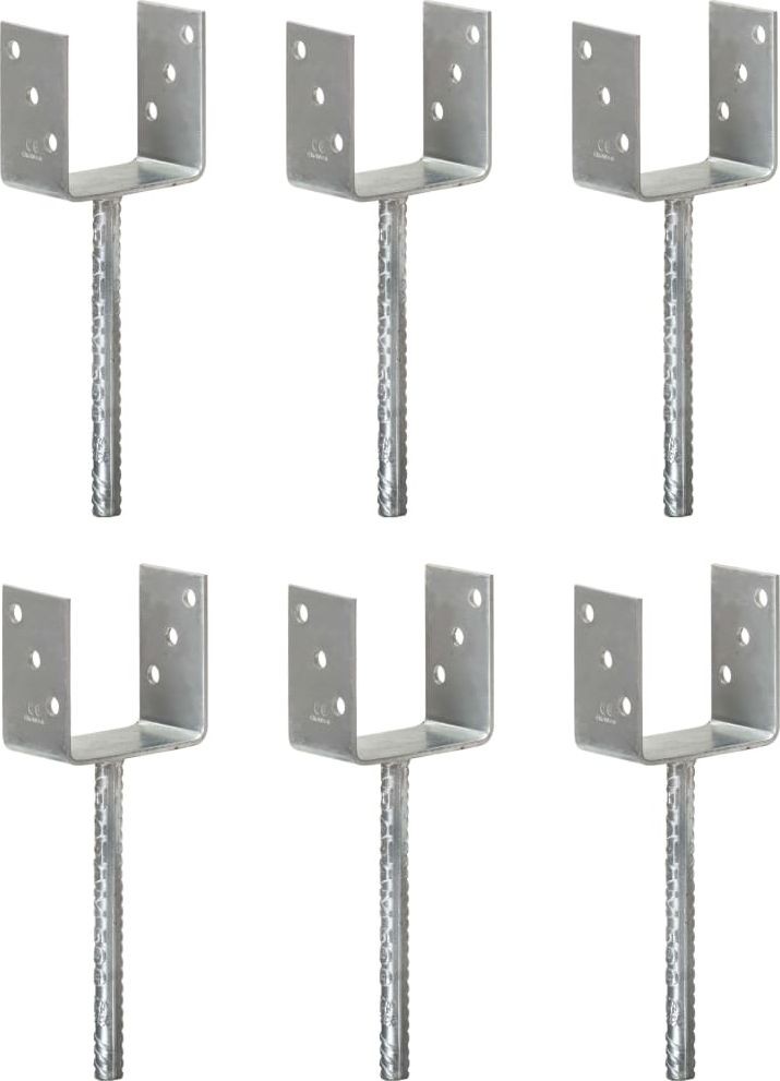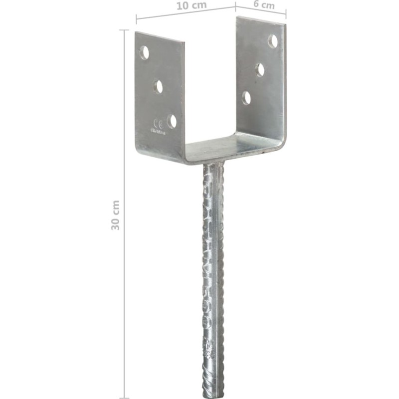 - Kotwy do słupków, 6 sztuk, srebrne, 10 x 6 x 30 cm, stal