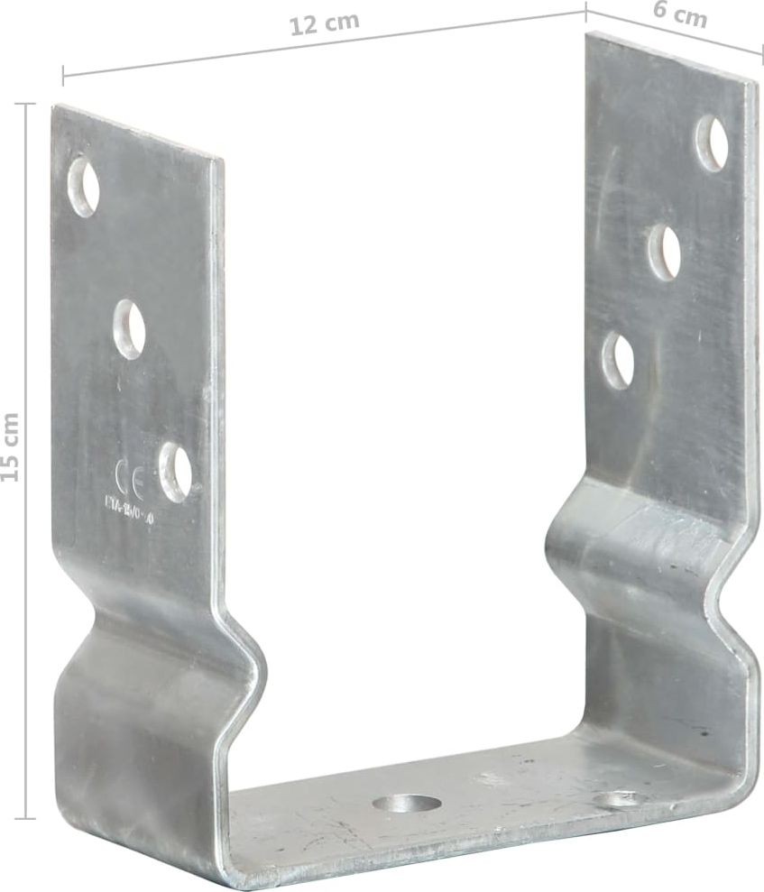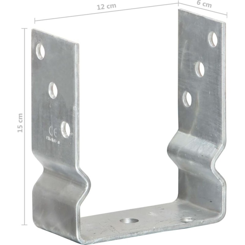 vidaXL Kotwy do słupków, 6 sztuk, srebrne, 12 x 6 x 15 cm, stal (145339)