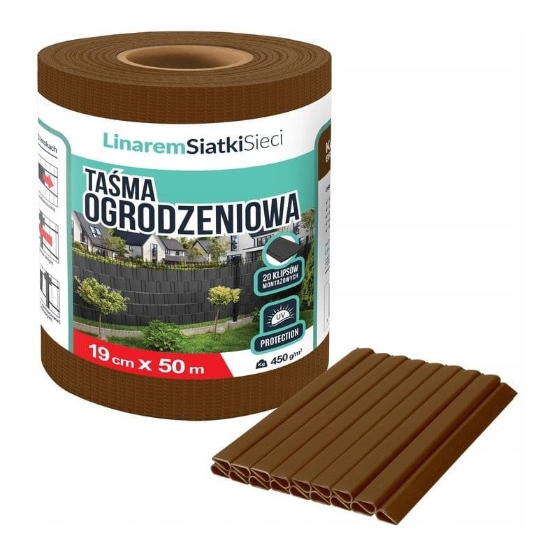 TAŚMA OGRODZENIOWA BRĄZOWA 19cmx50m OSŁONA NA OGRODZENIE PANELOWE PŁOT +UV