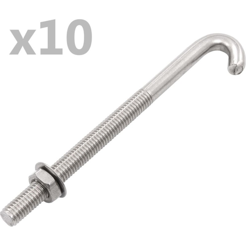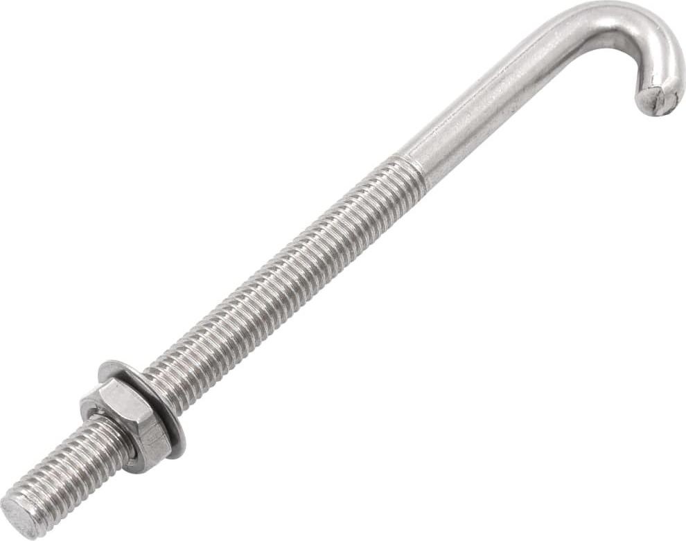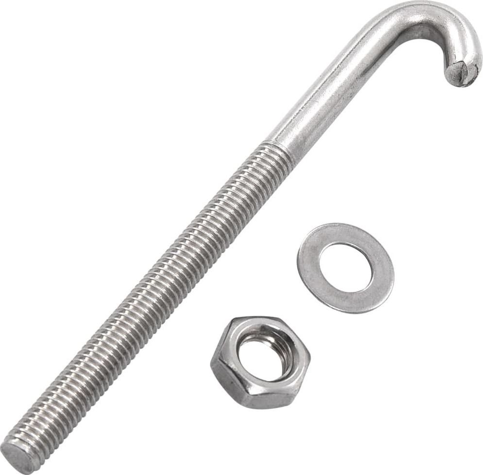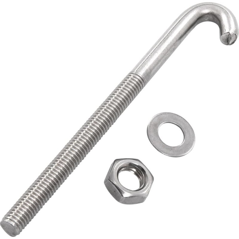 Wykonany ze stali nierdzewnej produkt jest odporny na rdzę, zapewniając długotrwałe użytkowanie. Przesyłka obejmuje 25 zestawów w jednym pudełku. W skład każdego zestawu wchodzi śruba J-kształtna, nakrętka sześciokątna i podkładka.