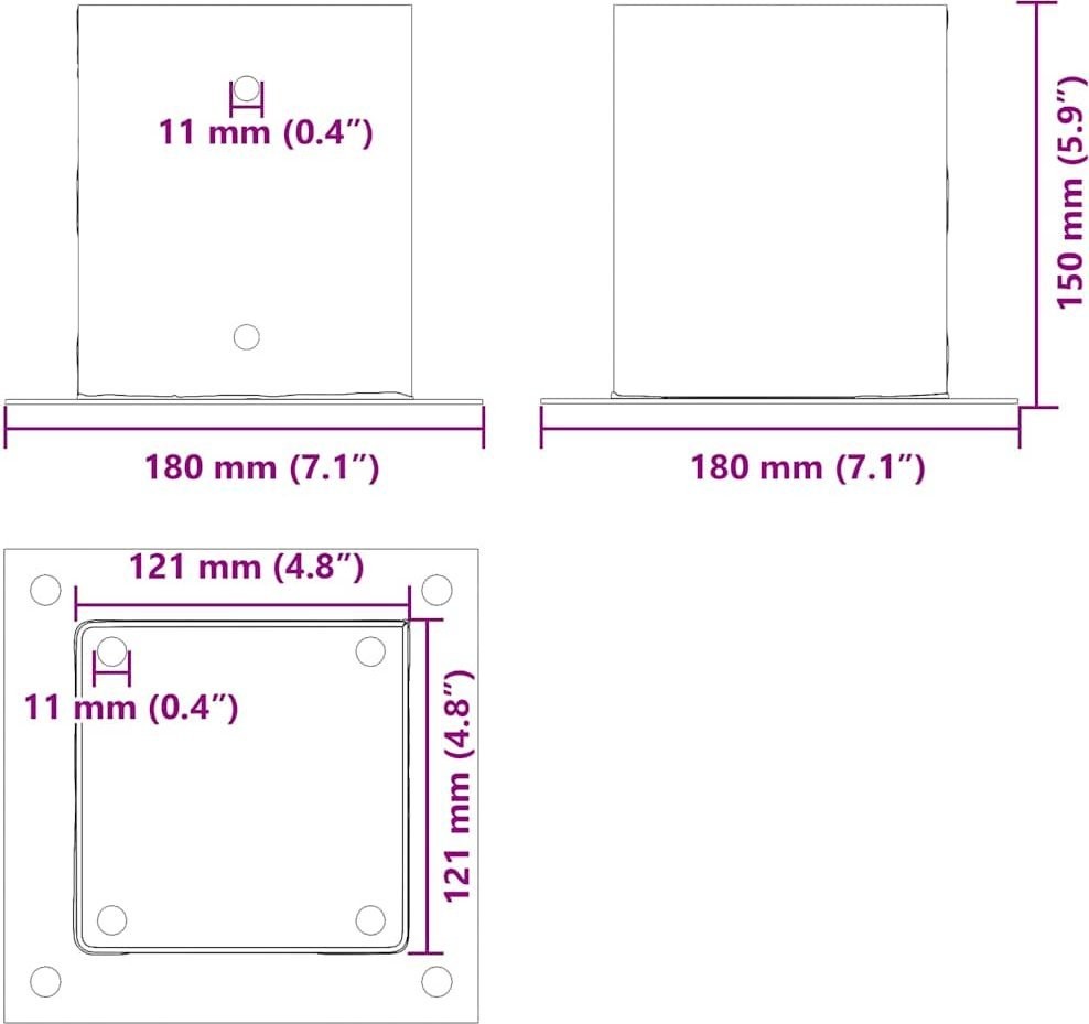 vidaXL Podstawy słupków kwadratowe 4 szt. Antracyt 121x121 mm