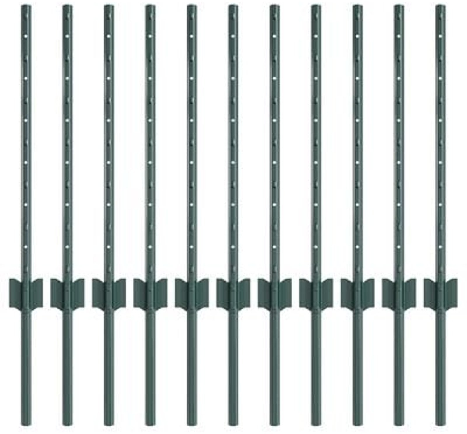 vidaXL Słupki Ogrodzeniowe 11 szt. U-Channel Zielony 60 cm Stal