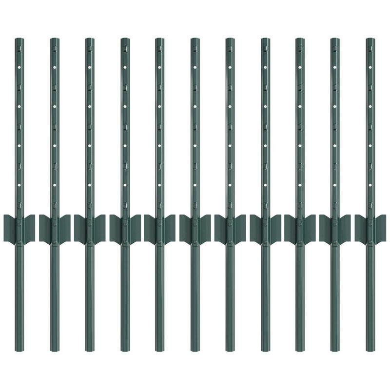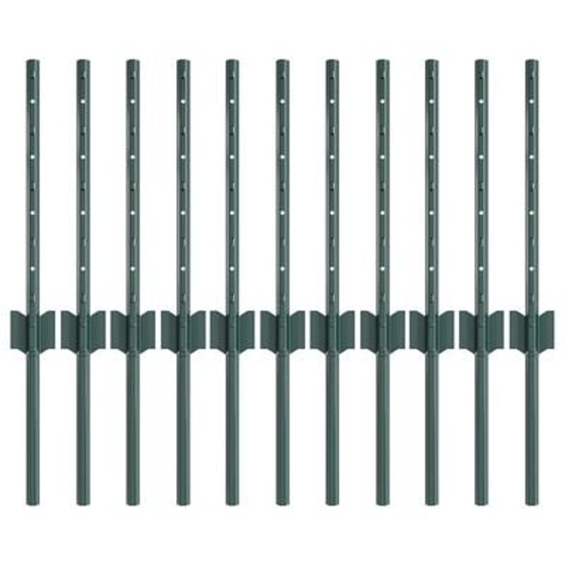 vidaXL Słupki ogrodzeniowe 11 szt U-Channel Zielony 40 cm Stal