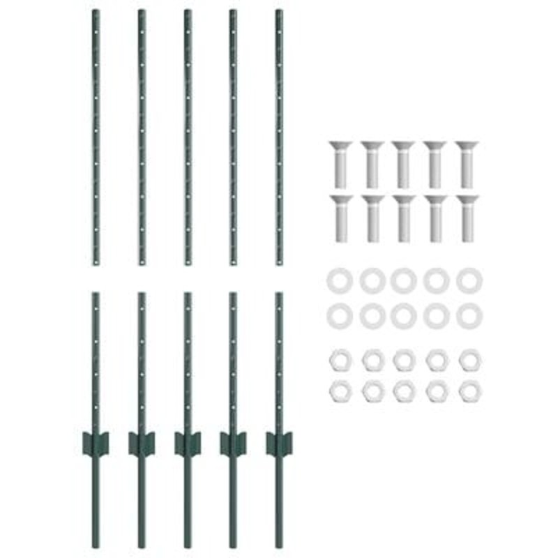 vidaXL Słupy ogrodzeniowe 5 szt. U-Channel Zielone 100 cm Stal